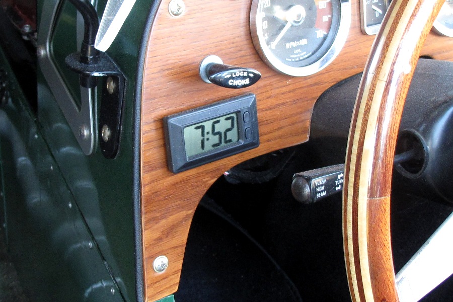 Because of our reduced work ethic we've made very few changes to the car in the last four months. The most prominent change is a digital clock installed on the dash where the brake warning light used to be. This seemed fully warranted, because the brake warning light never worked and the clock was only $4.95 with free shipping from Hong Kong. Amazingly, the clock keeps perfect time, and despite its futuristic appearance we like having it in the car so we can tell when we're running late, and also when it's time to add oil.