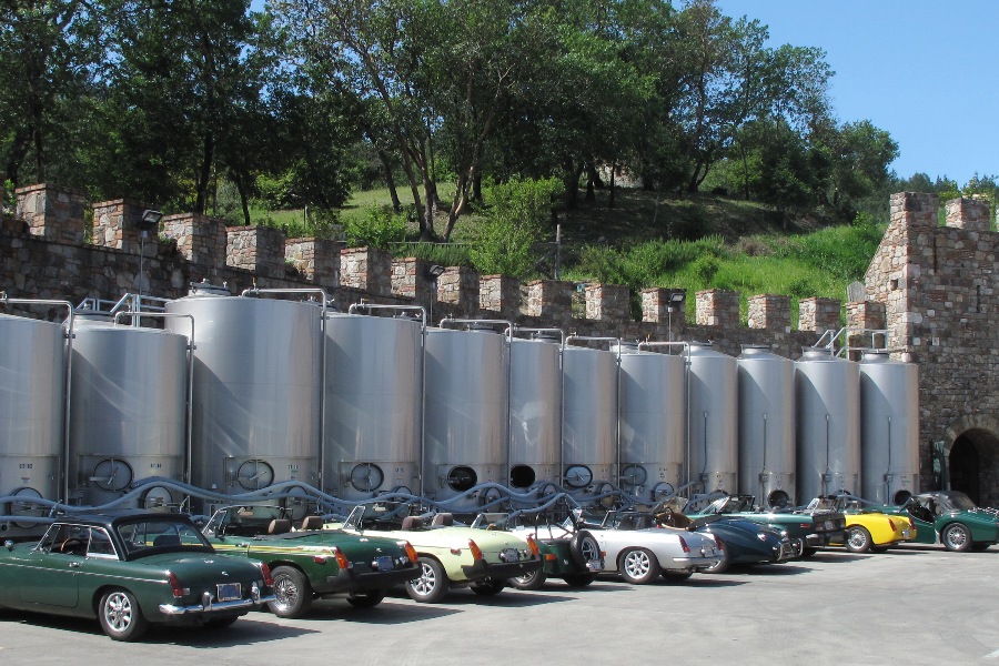 Among those many trips were several drives with the local M.G. Owners club. Members of the club seem to be okay with us tagging along so long as we stay in back. We've also enjoyed weekend runs up north with a local British car club, the NOBBC, who travel at a much more spirited pace and have less of a problem with our car, even if they're not 100% sure what it is. We did paste a couple of tasteful British flags on the sides, in an effort to emphasize the car's proud English heritage, in case the oil dripping from the undercarriage wasn't enough.