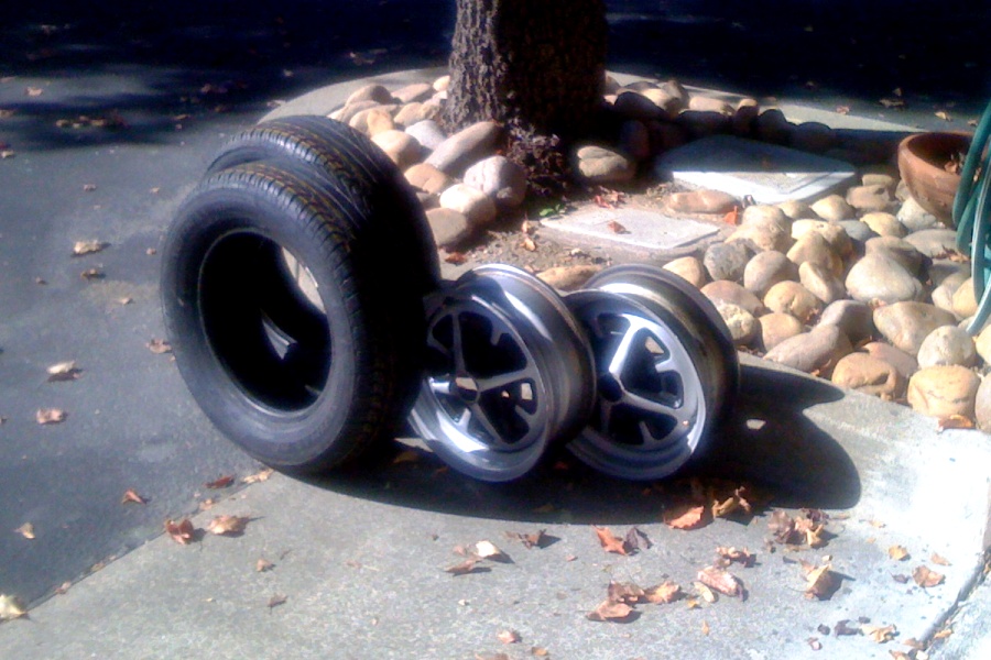 The ultimate wood-rimmed steering wheel for any classic British car is a Moto-lita. Everything else is a knock-off. We of course could never afford a genuine Moto-lita, ergo our penchant for knock-offs. We really liked our original wood-rimmed steering wheel, but it was huge. Because it was a gift from my generous girlfriend it took us almost a year to replace it, although once we made the decision it took only minutes to find a cheap knock-off on eBay. The new wheel was the right size, and it steered the car, but we all knew it would never look good. My generous girlfriend seemed to agree. Unsatisfied with the 1970s muscle-car look of our purportedly leather-wrapped steering wheel, she went online to research wood-rimmed wheels, and chanced upon the Moto-lita website. Not nearly as frightened as I was by the cost, possibly because the prices on the website were in pounds rather than dollars, she ordered Moto-lita's finest 13" wood-rimmed wheel and had it shipped air freight from the U.K. That wheel is now on the car, and if anyone out there has a 1970s muscle car in need of a 13" steering wheel wrapped in some kind of leather-like substance, let me know. As we promised earlier this year, we bought new tires for the car. Finally. We got General Altimax HPs in 185/65-14, a model popular among the MGB crowd for excellent dry traction. We were okay with the 10-year old Bridgestones that came with our donor, but two things. First, we had to keep the tire pressures at 40 psi, which is just about exactly twice what 185-section tires would require on a 1500-lb. car, and second, we had a blow-out. It wasn't a bad one. We never actually felt it, and it had no effect on drivabilty, we think in part because the blow-out didn't occur on an actual road wheel, but on the spare.