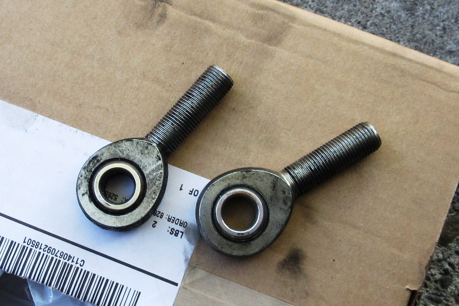 Three years later the clunk was still there, and sounded like it was getting worse. We even heard it occasionally in the forward gears. A recent thread on LocostUSA suggested a possible cause—suspension wear, specifically the bargain brand rod ends (a.k.a. Heim joints) we used to attach the rear trailing links to the axle back when we were trying to scrape together enough cash to get the chassis on wheels. The type of driving we do in the Locost (and, let's face it, every car we drive) had likely taken its toll on these cut-rate rod ends, particularly as they'd never seen any sort of lubricant in their lives. We decided to do something about it, and more than just slathering on a little grease. We ordered brand new Heim joints, going all out this time because we only needed five (four trailing links and the Panhard bar), and Summit Racing has free shipping on all orders over $99. Their $20 rod ends are made out of heat-treated 4130 (chromoly) steel, which admittedly sounds pretty good but we were a little concerned that the added cost was only buying us extra strength. We didn't need extra strength, we needed extra longevity—rod ends that would never wear out.