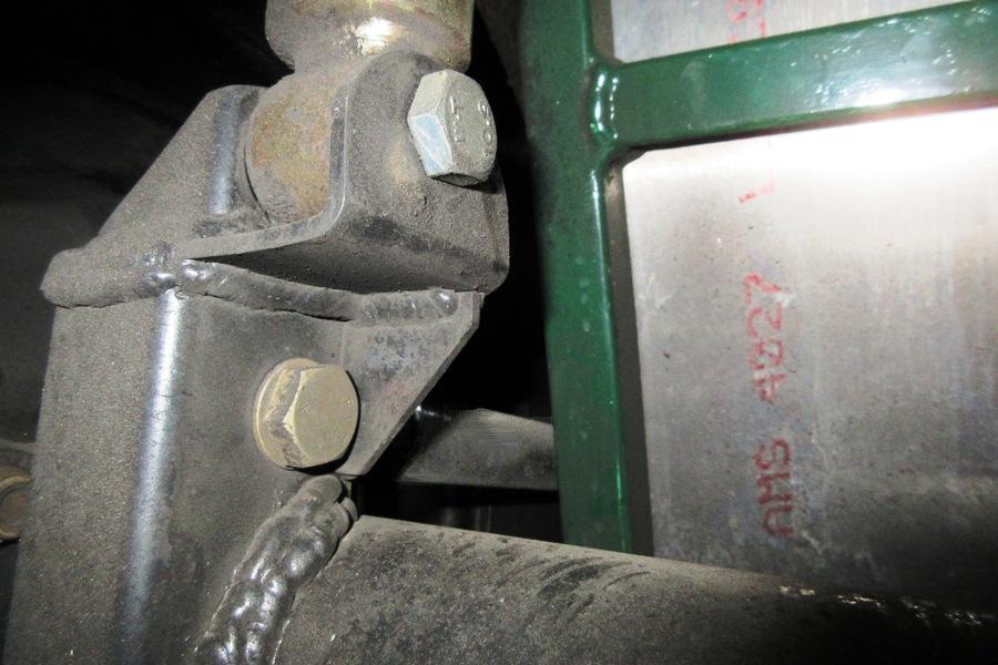 Next morning we hopped in the car, fired it up, and braced ourselves for the clunking noise as we backed out of the garage. Incredibly, the noise was gone. Not like it was quieter, or back to normal, it was just gone. Completely gone. That had never happened before. We're not sure if it was because the cheap old rod ends were worn out, or the deluxe new rod ends are just that good. The suspension has never been this solid. Even in the forward gears, you notice it. Obviously the upper links must be fine, or good enough. How long it'll stay this way, no one knows. We are postponing by a few weeks the frame repairs we promised we'd do after our recent encounter with a concrete median strip. We've pretty much determined that we only need to graft on two new pieces, to the ends of the LB and LC tubes. The F2 tube was only slightly deformed, and we're pretty sure we can coax it back into shape with a steel sleeve and a big C-clamp, thereby avoiding messing with the F2/LC joint, which wasn't damaged. This method of chassis straightening is not new to us, having tweaked a few frames on production cars over the years.