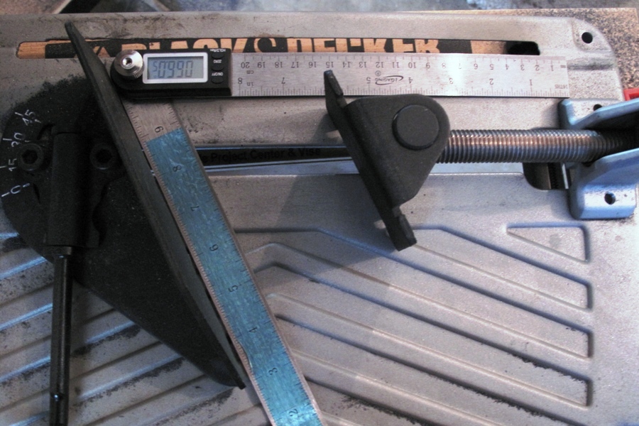 We bought a cool new digital protractor that runs on batteries and reads angles in tenths of a degree. Tenths. It seems to be very accurate. The protractor arms are about 9” long (I could tell you exactly, but then I'd have to go out in the garage to measure them, and it's dark out there), and it’s sort of interesting to note that you have to move the arms a noticeable amount, maybe 1/32”, to add just a tenth of a degree. At least it's interesting to us. Based on this we think getting all the angles on the ends of the frame tubes to line up will be a snap, at least until the battery dies.