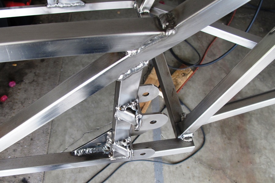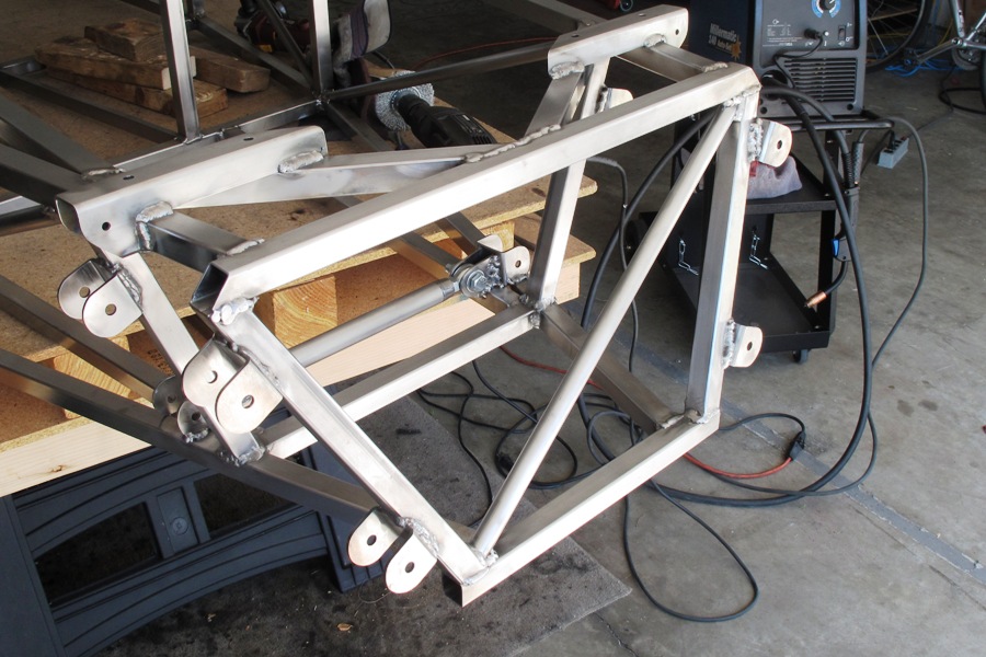 because they flex under load until they fatigue and break. We chopped our gussets from 16 gauge square tubing,