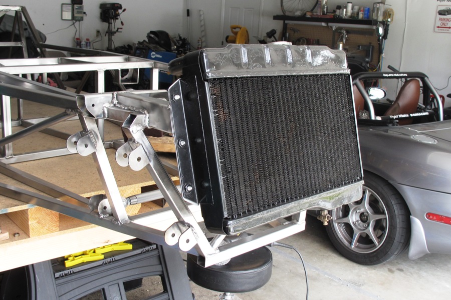 the strongest Locost front end in history. We also like how the radiator sits up almost straight, even though