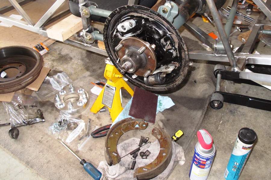 We're currently working on the rear brakes. This would be going much faster if all the parts had been