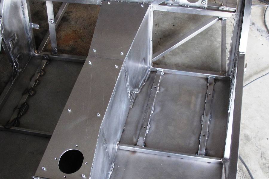 from 1/8" thick steel, which is welded close to the outer edge of the firewall where it serves as the