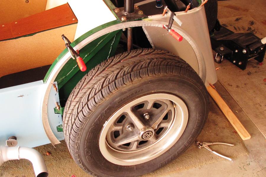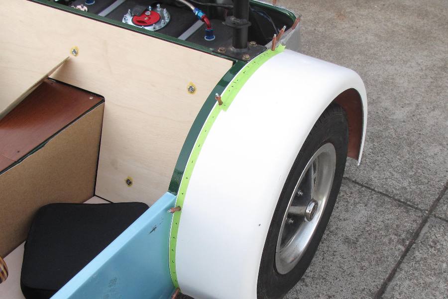 We looked to the Locost book for guidance on attaching the fenders, but it only said to bolt them
