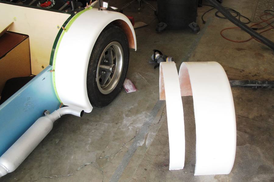 narrower than that. So we had to cut the fenders down to size, and since they're made out of fiberglass,