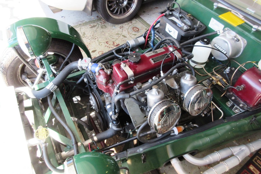 July 27, 2016 For awhile now we've had the sense that the time for retiring our venerable M.G. B-series 18V motor is near. The engine has served us well over the past three years, a couple of broken valves and countless gallons of burnt oil notwithstanding, but on a good day we can get at best 50 psi of oil pressure at the gauge, and that's if we squint and sort of avert our eyes. After a few miles on the freeway it drops lower. A lot lower. We bought ourselves a few extra pounds of pressure last year by reinstalling our old oil cooler, but that only delayed the inevitable.