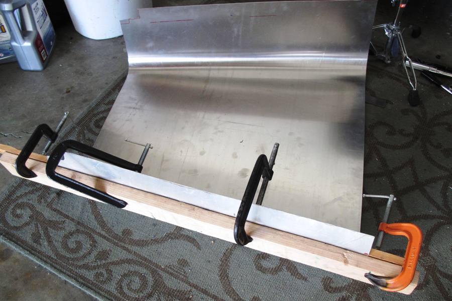 We were cruising along the freeway early one evening, enjoying the ride and minding our own business, when the hood popped up and flew off the car. We were a little surprised, but this isn't a particularly unusual event for our Locost, and damage in the past has always been minimal. So we pulled off the freeway, hopped out of the car, and ran back to retrieve it. We spotted the hood sitting right side up in the number 2 lane, looking fat and happy and unscathed, and while we waited for traffic to clear so we could make a mad dash to collect it, a truck came along and crushed it flat. So we have to make a new hood. For some reason that's still unclear to us, we saved the original paper template for the hood, so we should be able to cut a new sheet of aluminum to the correct size. Unfortunately, something we learned when we made our first hood, you can't fold a sheet of aluminum into the shape of a hood with the engine in the car. It's too tall. So we need to pull the engine, and you can probably see where this is going. With the engine out, we might as well do it all. Dismantle the front of the car, weld up the frame, fold up a new hood, and rebuild the engine.
