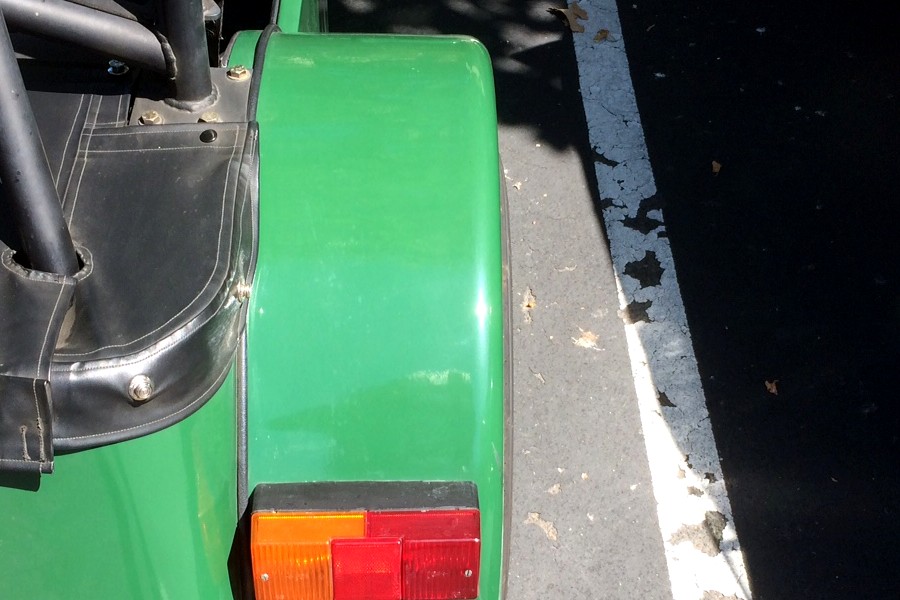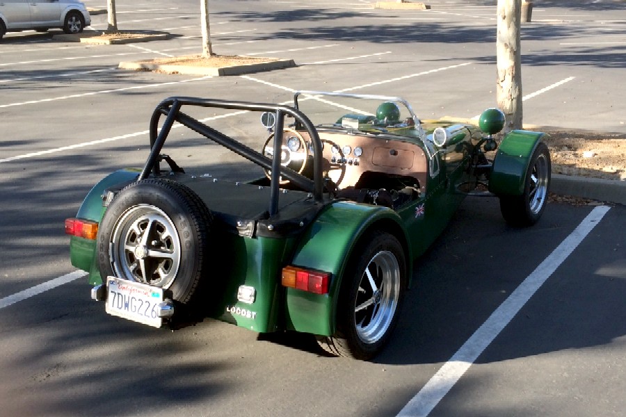 We did fix a few other items on the parts car, like the choke cable and the driver's side mirror. We also found the right rear bumper had been pushed in half an inch, which made removing the gas cap something of a challenge. We could've fixed it by replacing the bent bumper mount, but that would've taken money. Or we could've bent the mount back into shape, but that would've taken work. So instead we shimmed the mounting bolt, which was both free and easy since we already had something we could use as a shim— a large nut. The fix is well-disguised, so no one will ever know. And it's a parts car. Because this isn't the best time of year to drive around in a closed car without air conditioning, we only run the occasional early-morning errand in the GT, and continue to rely on the Locost as our daily driver. With new wheels and tires it feels more like an actual car every day. It tracks better, self-corrects better, and the steering wheel doesn't vibrate loose in our hands on the freeway. So much smoother at all speeds, and now it really is as fast as it looks. If we think about it, this is the Locost we always dreamed about back when we started building the thing. |