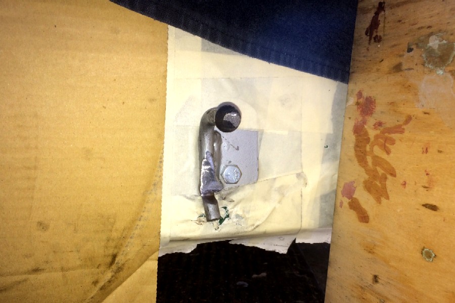 We did have to unbolt the exhaust again, but this time we didn't have to remove the seats and side panels, because we ground away most of the body mount with the part still attached to the car. Some tape and cardboard kept most of the paint intact, and by grinding only a little bit at a time we avoided melting the aluminum body panels. Afterwards we repainted a couple of spots on the exhaust that we missed last time, but the spots were small so we didn't have to waste any time waiting for the paint to dry. So a few quality hours spent tinkering with the Locost.